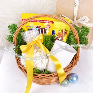 Праздничная шкатулка - корзина с фруктами и конфетами
