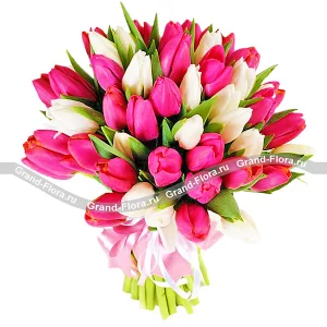 Для моей принцессы - букет из белых и розовых тюльпанов