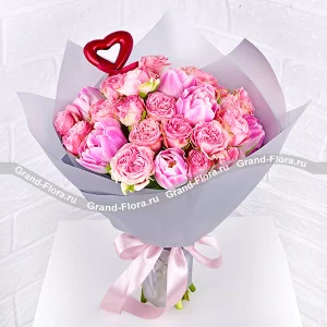 Нежность – букет с розовыми кустовыми розами и тюльпанами