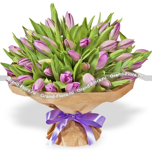 Тюльпан – это нежный и хрупкий цветок, который способен покорить своей красотой даже самое неприступное и ледяное сердце. А огромный букет фиолетовых тюльпанов может стать для вас началом примирения с любимой девушкой или зажжет страсть в глазах сотрудницы, которая вам давно симпатична.